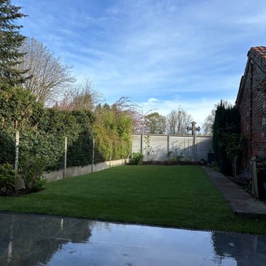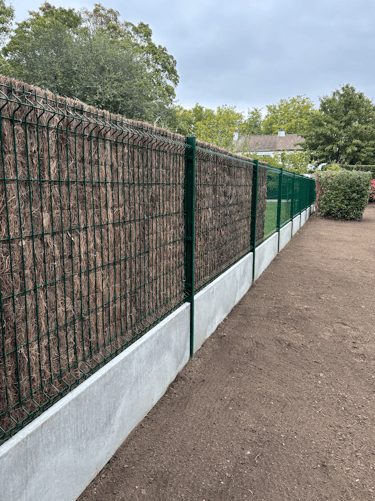 Pose de brise-vue (lamelles d'occultation avec grillage rigide, bande de bruyère).